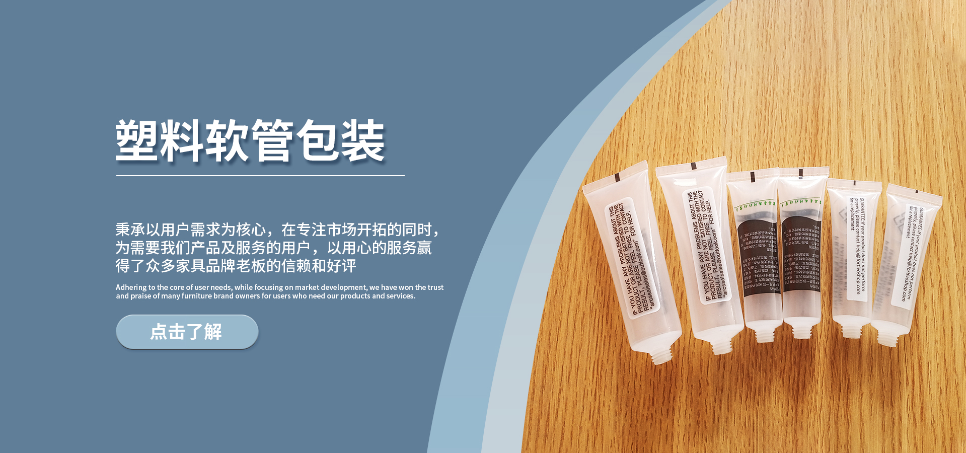 萊州市魯嘉包裝材料有限公司是煙臺萊州一家專業生產家具修補膏、家具美縫劑、各種木器修補膏、地板修補膏和各種塑料包裝的源頭工廠。
